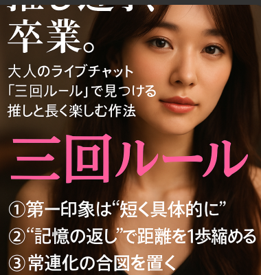 - 推し迷子、卒業。大人のライブチャット「三回ルール」で見つける推しと長く楽しむ作法【利用者の本音】